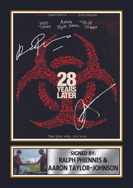 28 Years Later Printed Signed Poster Print – Horror Movie Wall Art Featuring Ralph Fiennes & Aaron Taylor-Johnson – Collectible for Fans & Memorabilia Enthusiasts