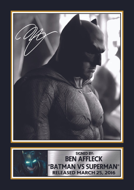 Ben Affleck Batman vs Superman Printed Signed Poster Print – Dark Knight Portrait Wall Art – 2016 DC Superhero Movie Memorabilia Gift