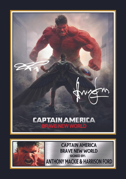 Captain America Brave New World Printed Autograph Poster – Anthony Mackie & Harrison Ford Marvel Movie Wall Art – Superhero Film Memorabilia Print