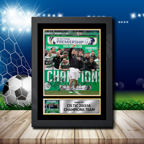 FOOTBALLERS Star CELTIC 2013 14 CHAMPIONS TEAM Autograph Print