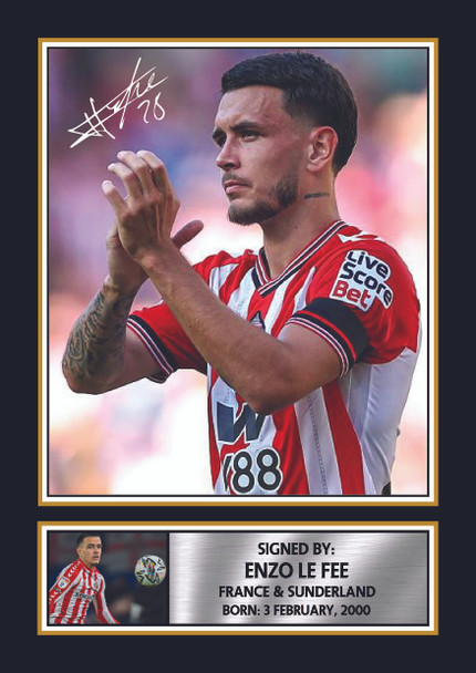 Enzo Le Fée Sunderland Printed Autograph Poster – France Football Star Wall Art – Soccer Memorabilia Gift for Fans