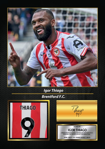 Igor Thiago Printed Signed Poster – Brentford FC & Brazil Forward Tribute Wall Art with Jersey & Bio Plaque – Premier League Football Memorabilia for Fans & Collectors