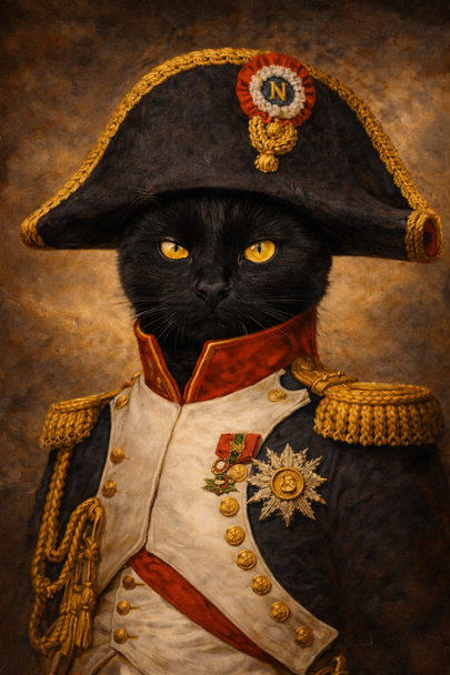 Bring history to life with a playful twist through this striking Napoleon Cat Portrait.