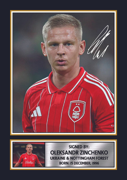 - Football Star Poster – Features Ukrainian international Oleksandr Zinchenko representing Nottingham Forest F.C., a great collectible for football supporters and memorabilia collectors.