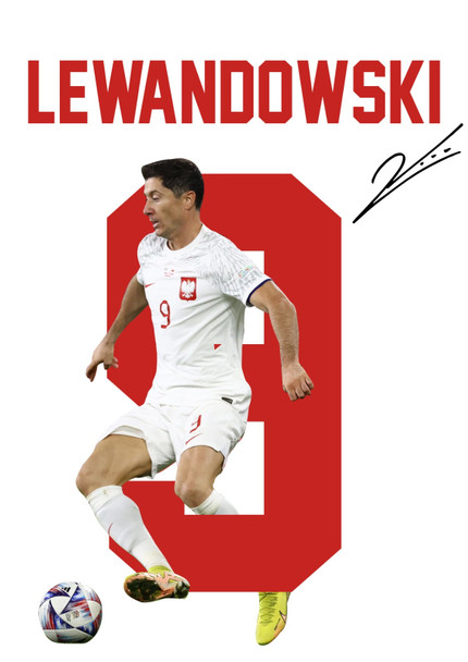 - Jersey Tribute Graphic: Bold "LEWANDOWSKI 9" design in national colors.
