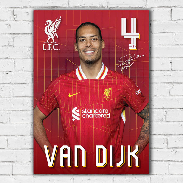 - Virgil van Dijk Signed Print: Features autograph reproduction next to his iconic No.4.