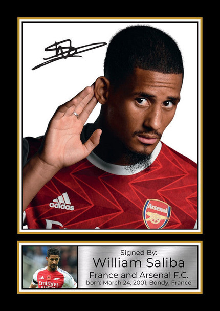 - Career Tribute Plaque: Reads: " Signed By: William Saliba, France and Arsenal F.C., born: March 24, 2001, Bondy, France "